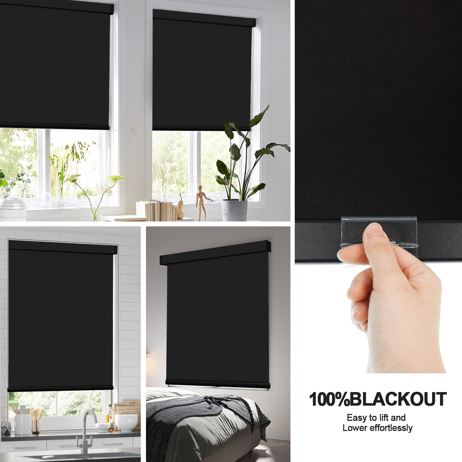 Cordless 100% blackout black roller shades