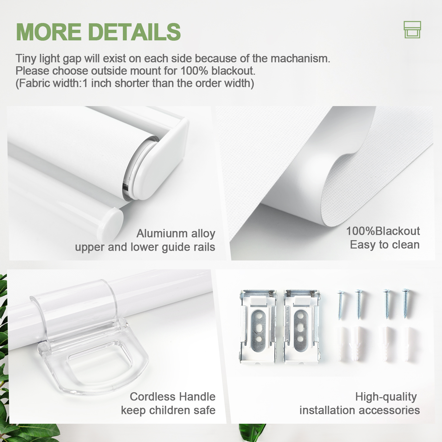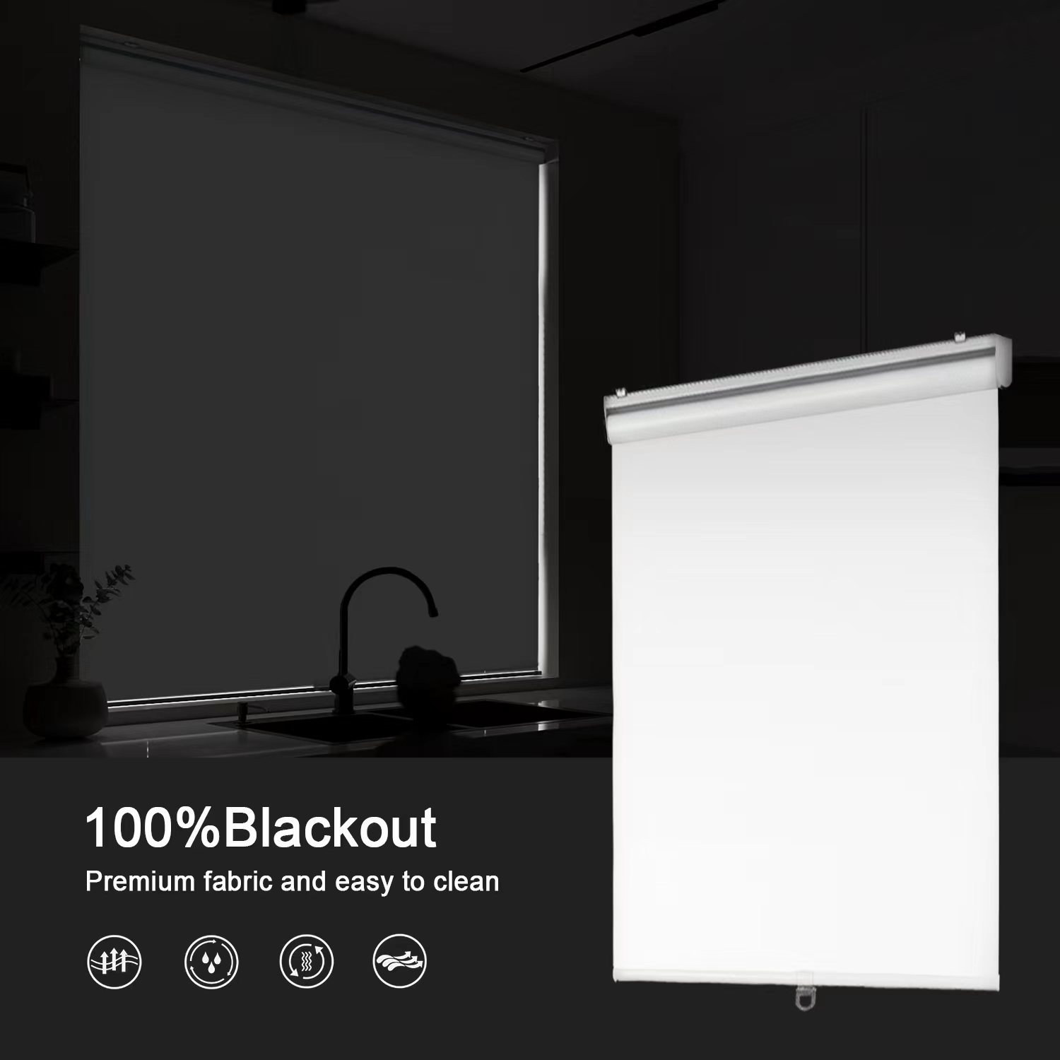 - Fabric Functions: Our roller shades made of 100% blackout 3 pass fabric coated with color backing, it can blocks out 100% sunlight.