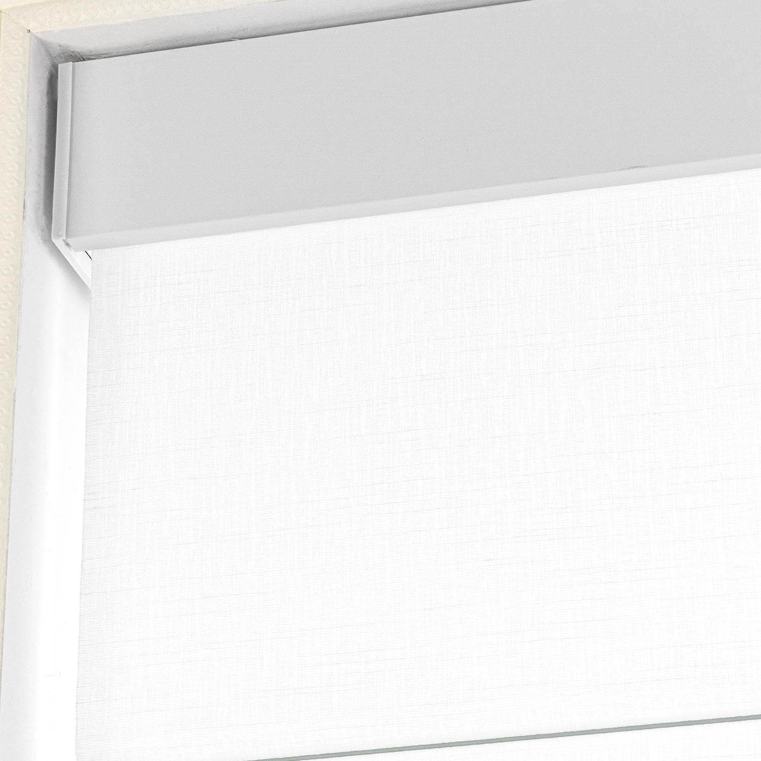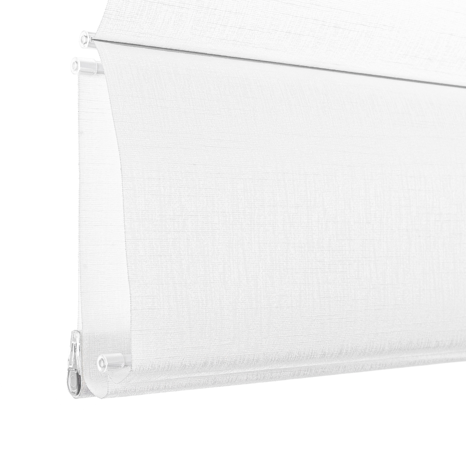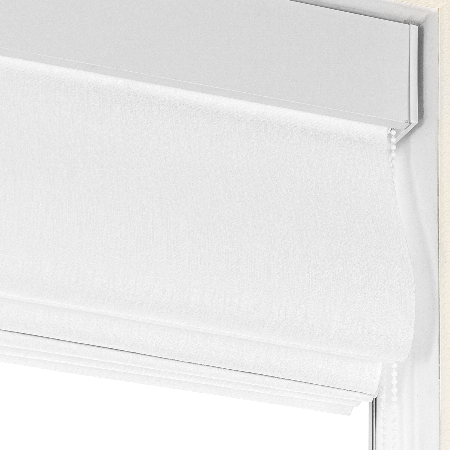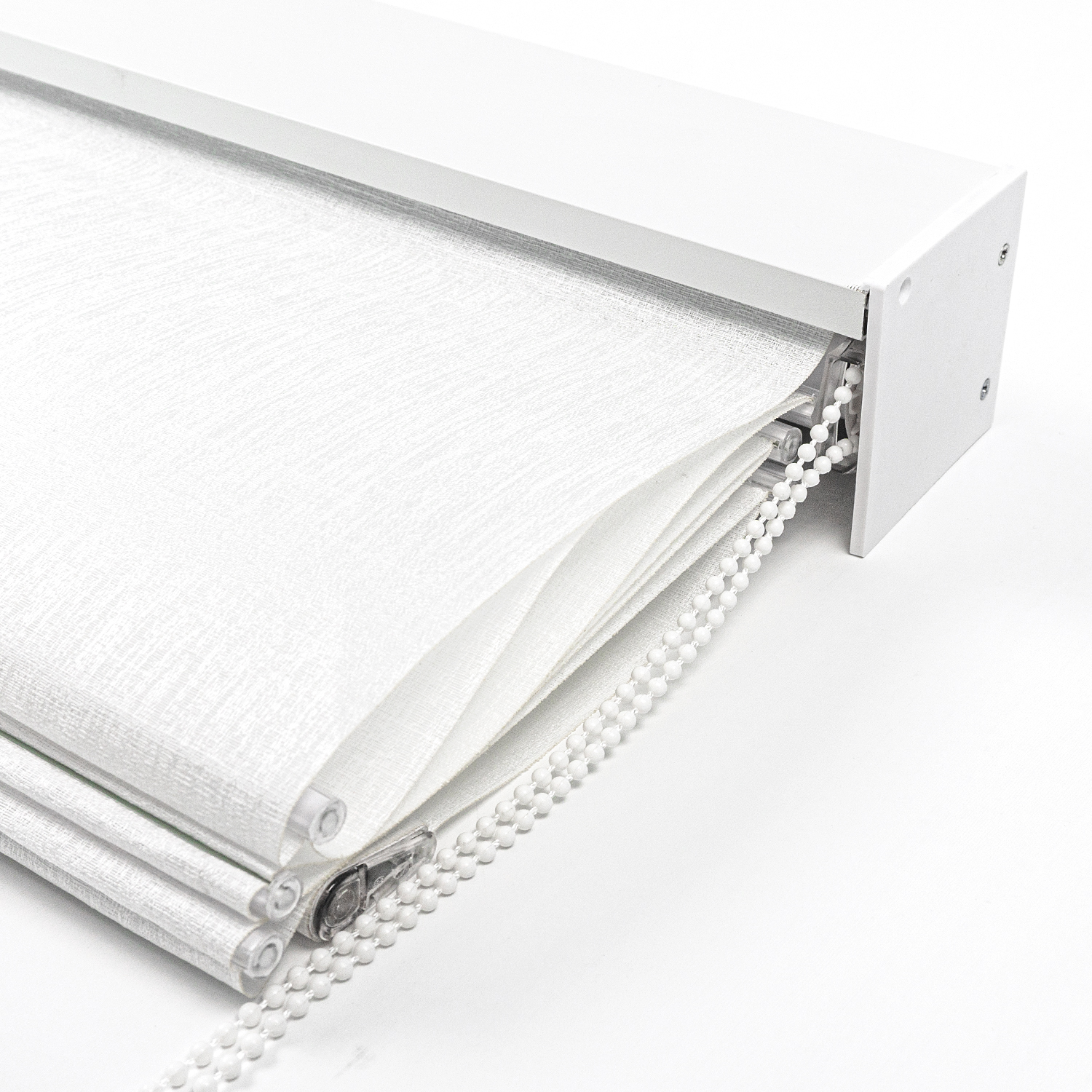 Light filtering white roman blinds with square cassettes